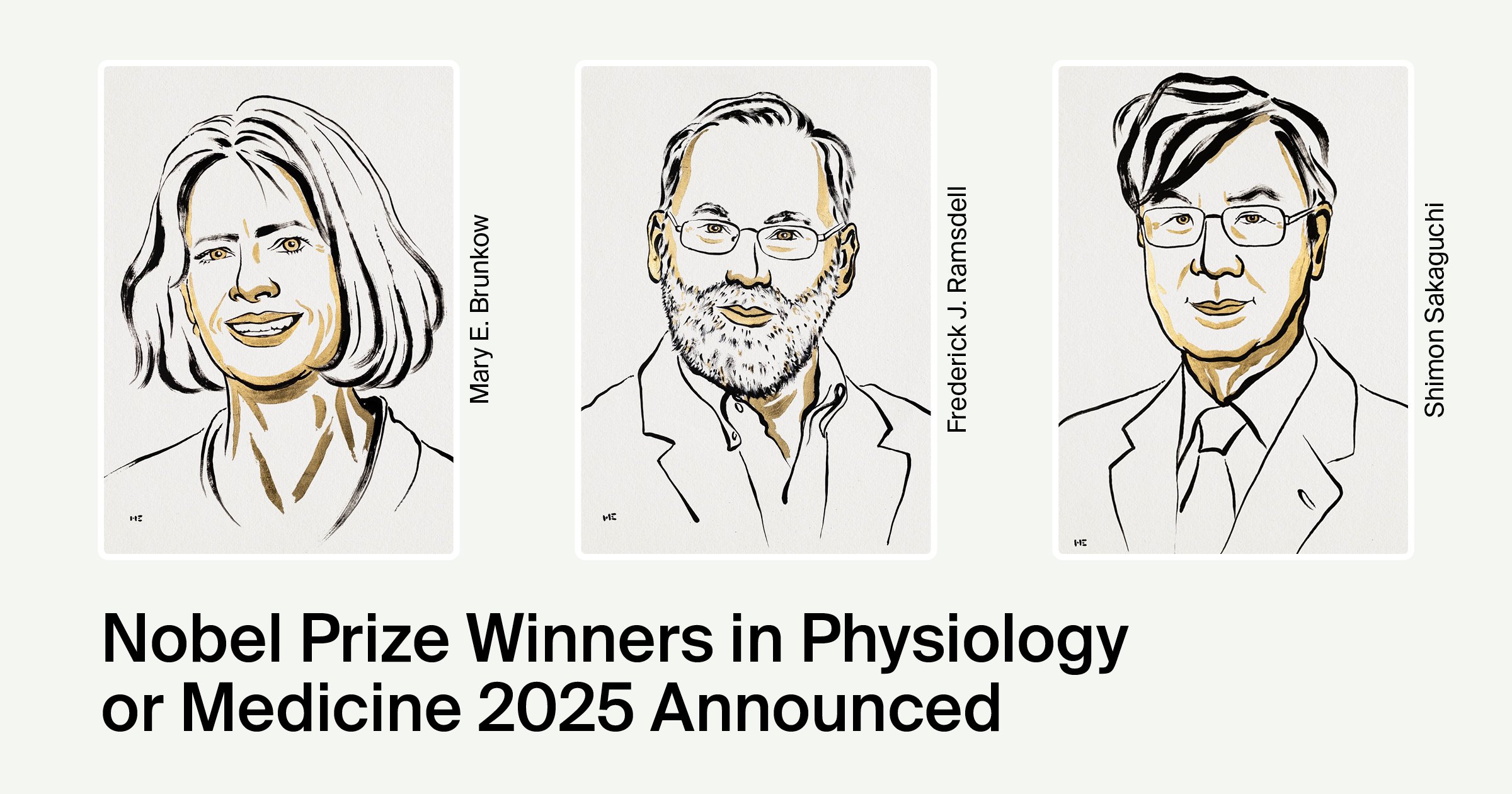 Çmimi Nobel në Fiziologji ose Mjekësi për vitin 2025 iu dha shkencëtarëve Shimon Sakaguchi, Mary Brunkow dhe Fred Ramsdell për zbulimet që shpjegojnë se si sistemi imunitar mbron trupin nga infeksionet e rrezikshme pa sulmuar vetveten. Ata identifikuan një grup të veçantë qelizash të quajtura qeliza T rregullatore, “rojet e sigurisë” të sistemit imunitar, që parandalojnë qelizat e tjera imunitare të kthehen kundër indeve të trupit.