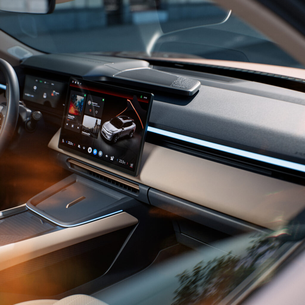 Dizajni modern dhe linjat futuriste e bëjnë Lynk & Co 08 menjëherë të dallueshëm, me dritat LED unike që tërheqin vëmendjen. Interiori është minimalist me tavan panoramik por plot me teknologji: ekran qendror 15.4 inç, sistemi infotainment i avancuar, OTA updates, dhe një sërë funksionesh që rrisin komoditetin, si sediljet me ngrohje, ventilim dhe masazh. Hapësira e gjerë dhe izolimi i shkëlqyer akustik sjellin një ambient premium, ndërsa elemente inovative si kamera selfie dhe opsioni për të regjistruar momente gjatë udhëtimit e bëjnë eksperiencën unike.