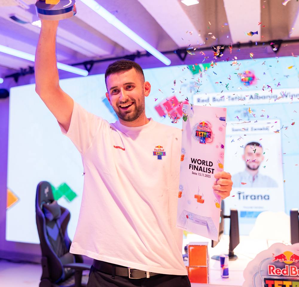 Në skenën e lojës që solli sfidat e veta pasi këtë herë luanin me leva dhe jo nga telefoni ato nuk luftuan vetëm për titullin kampion të Shqipërisë, por edhe për një vend të çmuar në finalen botërore që do të mbahet në Dubai.Në përfundim të garës së fortë, Sonald Zenelaj u shpall kampion kombëtar, duke fituar të drejtën të përfaqësojë Shqipërinë në skenën ndërkombëtare të Red Bull Tetris e cila do zhvillohet nga telefoni me dron në Dubai Frame në datat 11-15 Dhjetor.