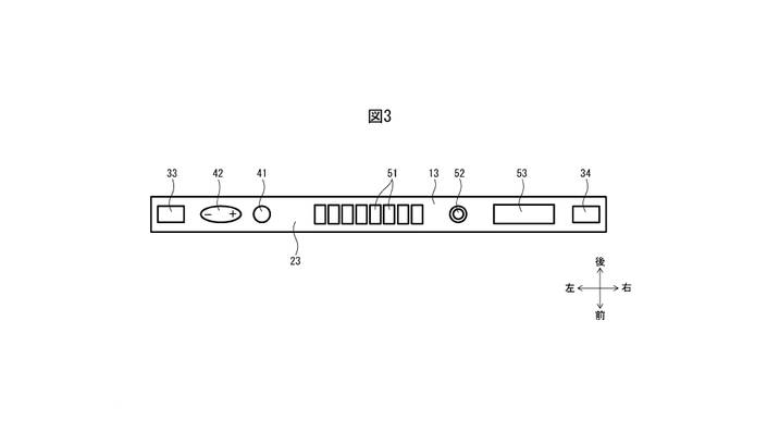 Fillimisht, përdoruesit nuk do të kenë më Joy-Cons në pajisjen e re, por thjesht një analog në anën e majtë dhe 4 butonat e tjerë në të djathtën. Gjërat bëhen dhe më interesante në pjesën fundore të pajisjes, ku lojtarët tani do të gjejnë butonin Home. Sipas përshkrimit të patentës, arsyeja për ta zhvendosur këtu është se lojtarët rrallë do të kenë nevojë ta përdorin atë gjatë sesioneve të lojës, duke lejuar kështu Nintendo të lirojë hapësirë në pjesën e përparme të pajisjes. Sipërfaqja e poshtme është gjithashtu vendi ku lojtarët do të gjejnë portën USB të konsolës (54), altoparlantët (55 dhe 56) dhe një buton për kapjen e screenshots apo regjistrimet e lojës (44).
