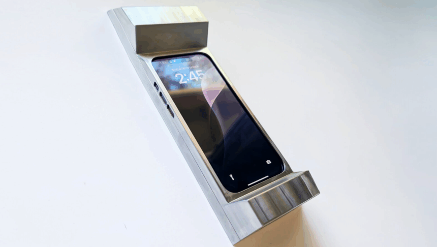 Dizajni i kësaj mbulese është frymëzuar nga telefonat “si tullë” të viteve 1980, me forma drejtkëndëshe dhe trashësi të theksuar. Megjithë përmasat e mëdha, kapaku përfshin hapje për portën e karikimit, butonat e zërit dhe kamerën, duke lejuar përdorimin bazë të aplikacioneve si mesazhet, thirrjet apo hartat — të paktën derisa lodhja të mos e bëjë më të mundur.