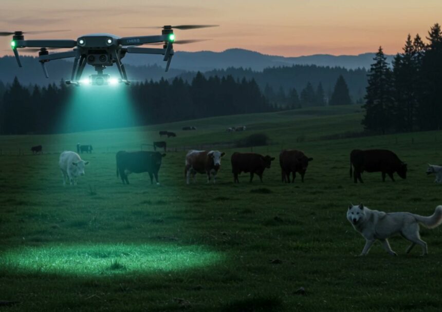 Prej mijëra vitesh, njerëzit janë përpjekur të mbrojnë bagëtinë nga ujqërit, por sot biolojgët në kufirin Kaliforni–Oregon po testojnë një metodë të re: përdorimin e dronëve me altoparlantë dhe kamera termike. Ata transmetojnë muzikë të zhurmshme si “Thunderstruck” nga AC/DC, skena filmash ose zëra njerëzorë për t’i trembur ujqërit dhe për t’i mbajtur bagëtive. Këto teknika janë zhvilluar nga Shërbimi i Inspektimit të Shëndetit të Kafshëve dhe Bimëve (USDA) dhe kanë treguar rezultate premtuese në studimet e para.