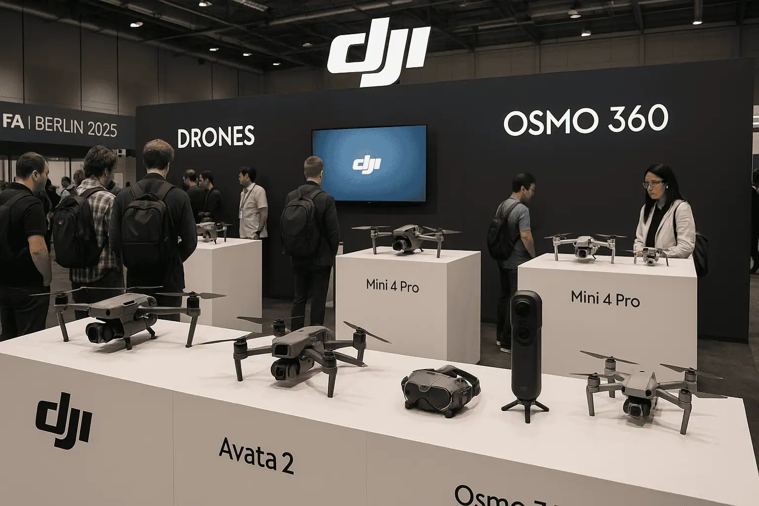 Gjithashtu përfshihet linja e plotë e dronëve si Mavic 4 Pro, Avata 2, Air 3S, Flip, Neo, dhe Mini 4 Pro, si dhe stabilizues si RS 4 Mini, RS 4 Pro, Ronin 4D dhe sistemi transmetues SDR Transmission për filmime profesionale.