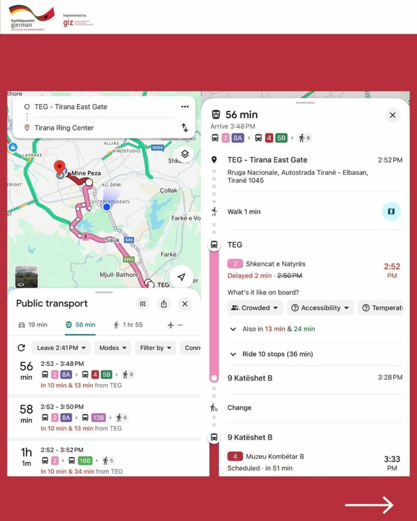 Përdoruesit e transportit publik në Tiranë tani mund të shohin në kohë reale se ku ndodhen autobusët, të planifikojnë më mirë udhëtimin e tyre dhe të kenë informacion të saktë mbi kohën e mbërritjes së linjave. Madje, edhe Google Transit ka filluar të përdorë këto të dhëna, duke sjellë një përvojë më të lehtë dhe të qasshme për të gjithë ata që lëvizin në qytet.