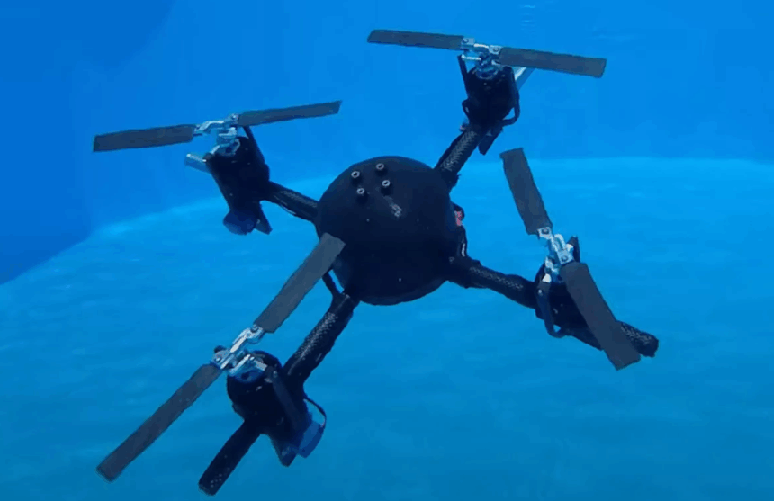 4 studentë inxhinierie në Universitetin e Aalborgut (AAU Energy), Danimarkë, kanë zhvilluar një prototip droni hibrid që mund të kalojë pa ndërprerje nga fluturimi në ajër në operim nën ujë. Projekti, pjesë e temës së diplomës së Andrei Copaci, Pawel Kowalczyk, Krzysztof Sierocki dhe Mikolaj Dzwigalo, u realizua gjatë dy semestrave dhe përfshin një inovacion kryesor: sistemin e helikave me kënd të ndryshueshëm në kohë reale. Kjo u lejon të prodhojnë shtytje efikase si në ajër, me densitet të ulët, ashtu edhe nën ujë, ku rezistenca është shumë më e madhe.